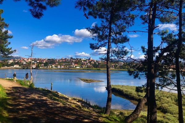 Hay mucha arboleda y el camping es muy sombreado, los servicios de cafetería y restaurante aun estaban cerrados, pero no era problema pues a un paso en el pueblo hay bastantes cafeterías para desayunar y tapear. Hay un paseo maravilloso pegado al mar ,por el que puedes llegar andando hasta Bayona, y subir al parador desde el que se tienen unas vistas preciosas.