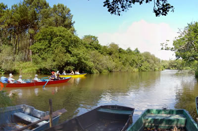 Se puede hacer un recorrido en un tipo de barca tradicional de poco calado preparada para navegar en aguas someras, o recorrer andando el sendero de 8 km que lleva hasta el mar, bajo una variada y abundante vegetación en las orillas que alberga también diversas especies de pájaros.